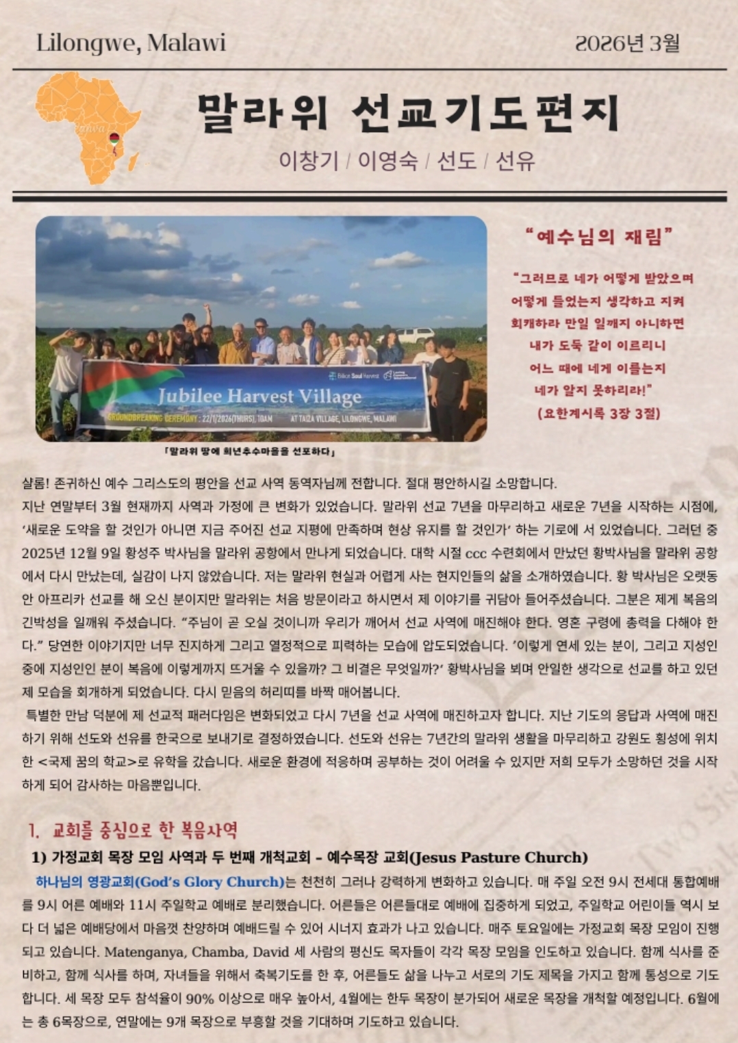[프로젝트 안내 : 희년 추수 마을(Jubilee Harvest Village)]